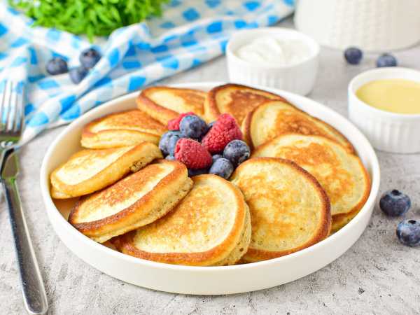 Дополните готовые оладьи сметаной, сгущенкой или джемом. Приятного аппетита!