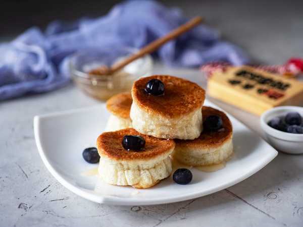 Прогрейте сковороду на плите и смажьте ее растительным маслом. Выложите 2-3 ст.л. теста на центр сковороды и сразу же убавьте нагрев до среднего. Обжарьте панкейк до появления крупных пузырей и переверните с помощью широкой силиконовой лопатки.