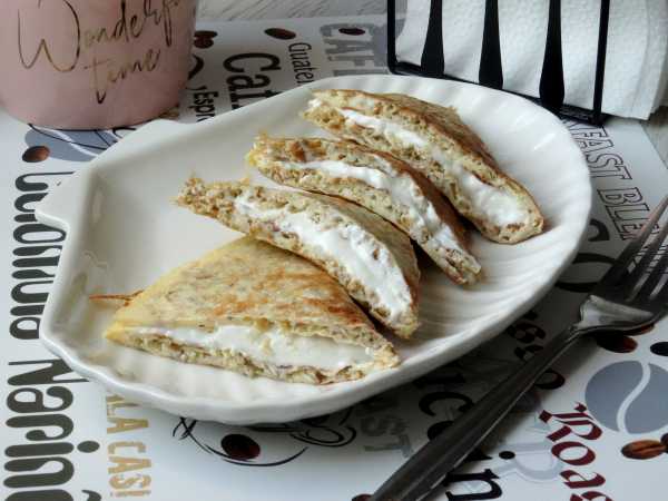 Аккуратно сложите овсяноблин и подавайте к столу. Получился вкусный и питательный завтрак. Приятного аппетита!