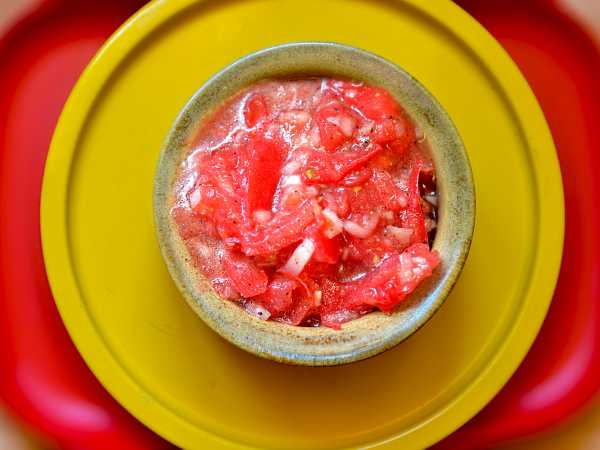 Залить капусту с овощами подготовленным маринадом, накрыть плоской тарелкой и поставить груз. В качестве груза можно использовать банку с водой.