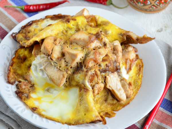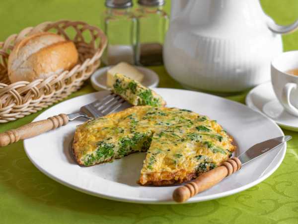 Готовьте диетический белковый омлет на сковороде под крышкой примерно 10-15 минут. Если не осталось жидких мест на омлете, то он готов.