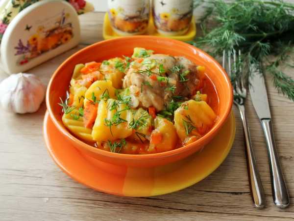 Тушите блюдо до готовности картошки. В конце приготовления добавьте измельченный чеснок.