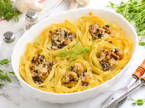 Продукты для приготовления пасты с лисичками и курицей - перед вами!