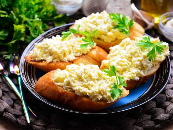 Сверху на бутерброды с яйцом распределите сыр и готовьте оставшиеся 2 минуты в аэрогриле при той же температуре.