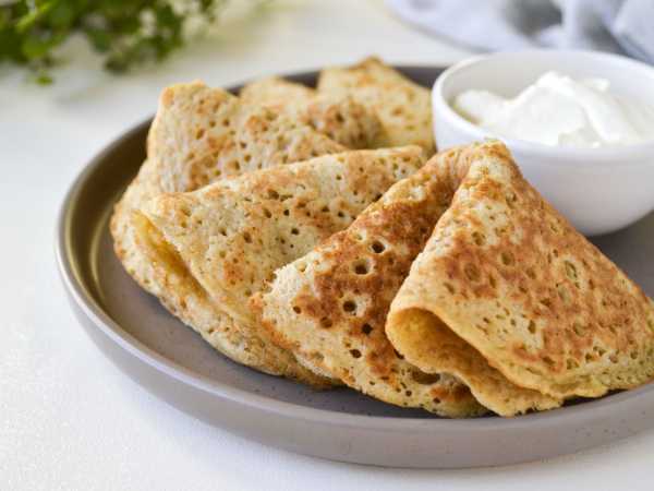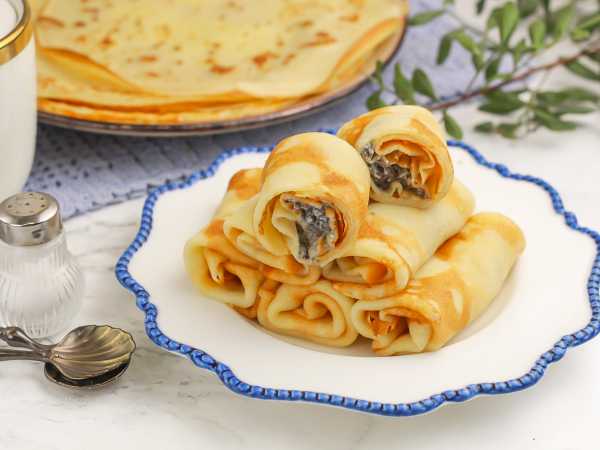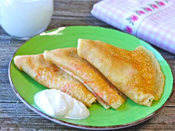 Приготовьте аналогично все блины. Можете, при желании, подготовленные блины поджарить с двух сторон на сливочном или топленом масле до румяности. Кстати, блины в таком виде можно заморозить и хранить в морозильной камере в течение нескольких месяцев.