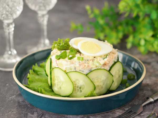 Салат «Мимоза» в форме венка готов, и его уже можно подавать к столу. Приятного аппетита!
