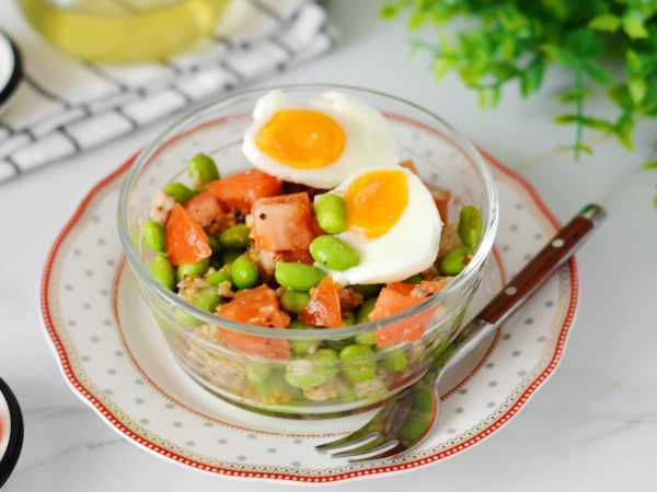 Желтки натираем на мелкой тёрке и посыпаем салат сверху. Этот слой смазывать майонезом не нужно. Убираем салат в холодильник примерно на полчаса.