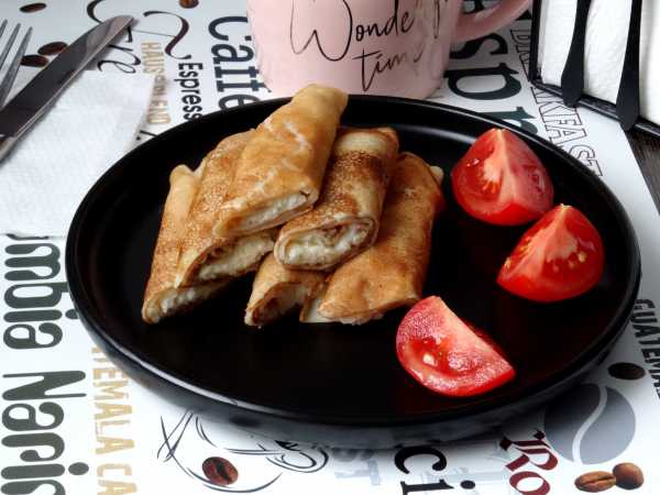 Готовые блинчики с мясом и картошкой перед подачей можно поджарить до румяной корочки на сливочном масле или разогреть в микроволновке. Подавайте со сметаной, зеленью, свежими овощами.
