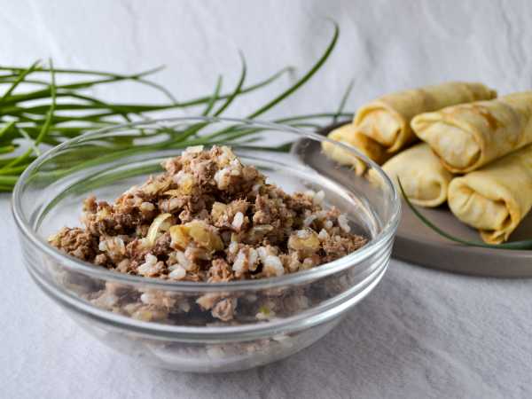 Соедините мясо с тыквой и луком. Посолите и поперчите по вкусу, перемешайте. Начинка для блинов готова.