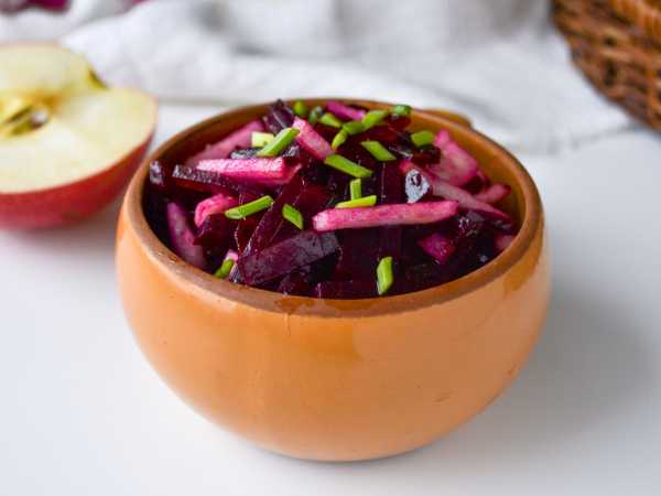 Удобным для вас способом приготовьте свёклу. Ее можно запечь в духовке, отварить в кастрюле или приготовить на пару в мультиварке.