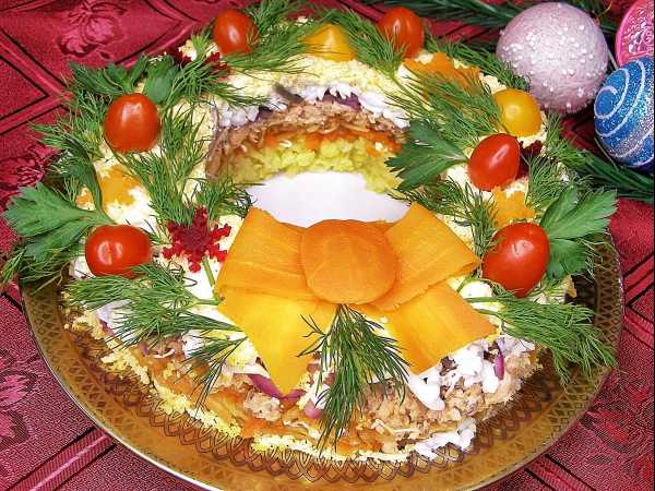 Готовый салат «Букет роз» с блинами подаём к праздничному столу. Приятного аппетита!