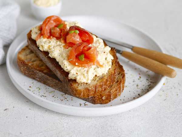 Сваренные яйца выкладывайте на бумажные полотенца, чтобы убрать капли воды, а затем уже - на хрустящий хлеб, украсив свежей зеленью.