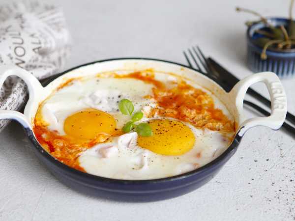 Яичная смесь готова, сковорода нагрета. Выставляем средний нагрев и вливаем яичную смесь в сковороду.