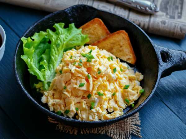 Скрэмбл - это то блюдо, которое готовится буквально за пару минут, но есть свои нюансы. Яйца - продукт капризный, и они обязательно должны быть свежими. Перед подачей завтрака заранее подготовьте тосты, овощи, зелень, всё то, с чем вы планируете его подавать.