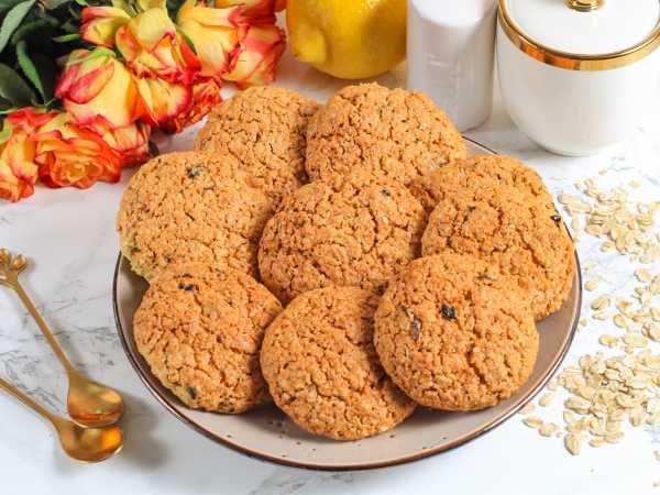 На пергамент выложите тесто, приплюсните каждую порцию, придавая форму печенья. Поставьте печенье из овсяной муки с изюмом в предварительно разогретую до 180 градусов духовку и выпекайте 12-15 минут, пока края не станут золотистыми.
