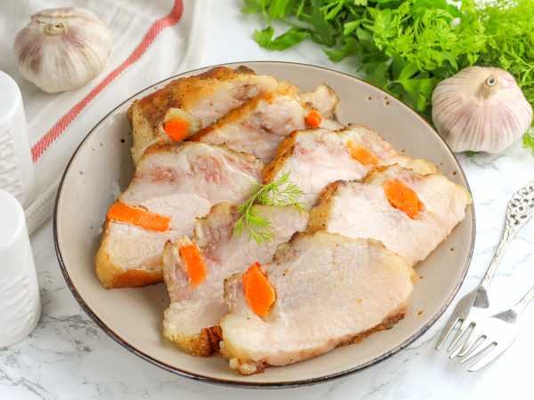 Запеченную в духовке свиную шею в беконе немного остудите и подавайте к столу. Приятного аппетита!