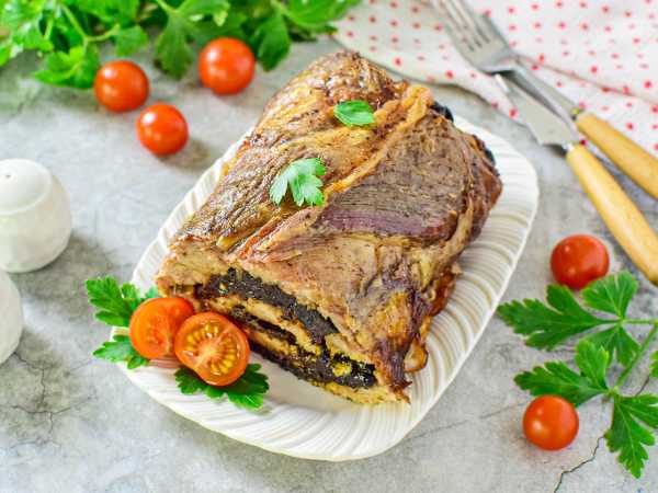 Заверните в пергамент и поставьте в духовку, предварительно разогретую до 180 градусов, примерно на 1,5 часа. В конце приготовления откройте пергамент, чтобы мясо немного подрумянилось.