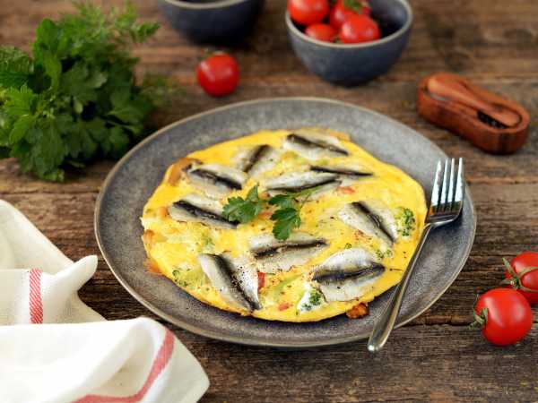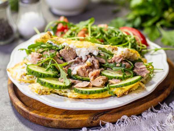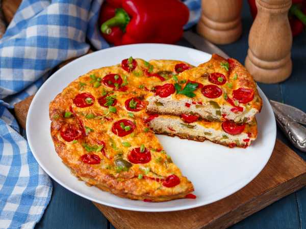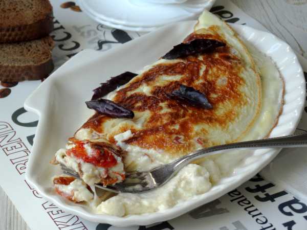 Переложите омлет на блюдо и подавайте к столу. Приятного аппетита!