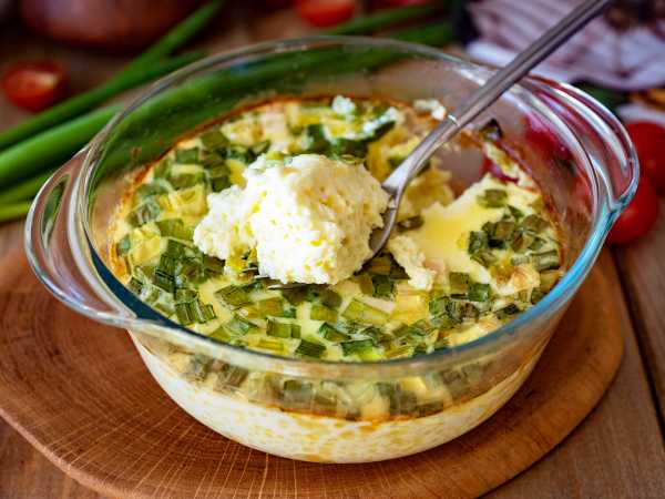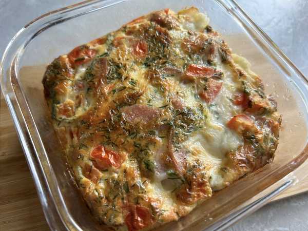 Через 20 минут наш омлет готов! Достаньте форму из духовки и дайте омлету немного остыть. При остывании он немного осядет - это нормально и на вкус никак не повлияет.