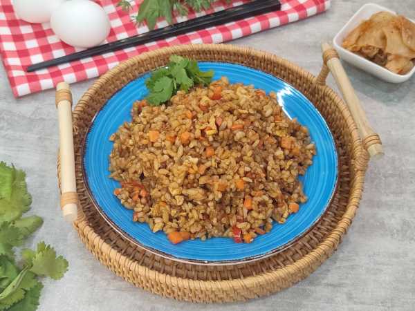 Перемешайте, обжарьте рис на сковороде пару минут, помешивая.