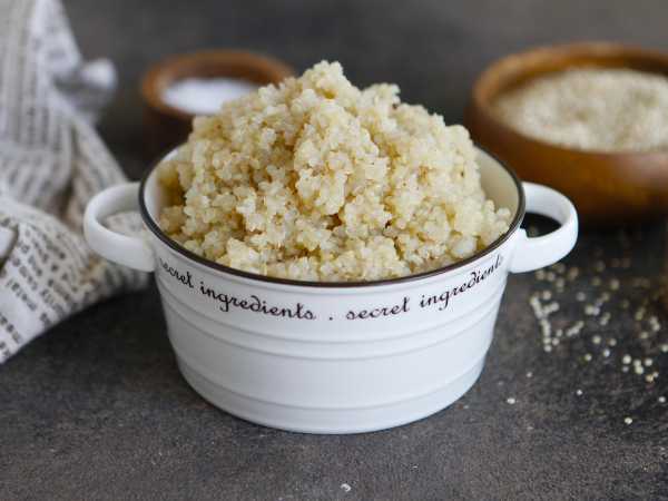 Киноа тщательно промойте, положите в сотейник, влейте овсяное молоко, добавьте соль. Поставьте сотейник на огонь.