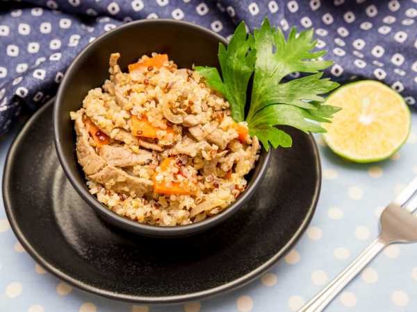 Соберите продукты для приготовления постной каши из киноа с фруктами.