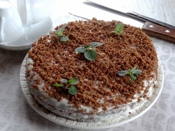 Срезанную верхушку измельчить в блендере, посыпать верх торта.