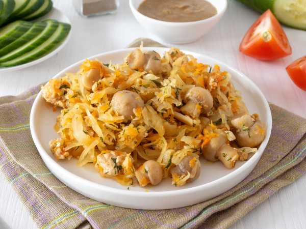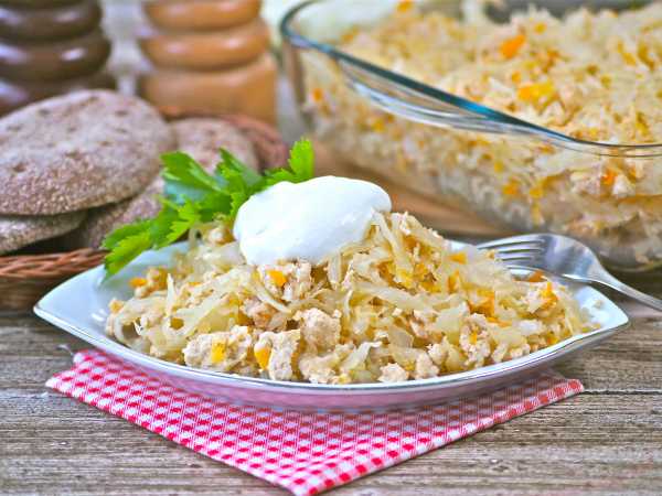 Тушеная курица в сметане с капустой