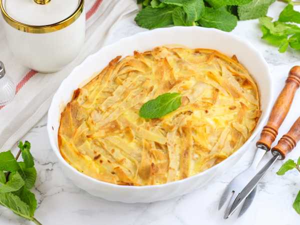 Готовому лапшевнику дайте постоять 5-10 минут, чтобы его можно было легче нарезать на порции.
