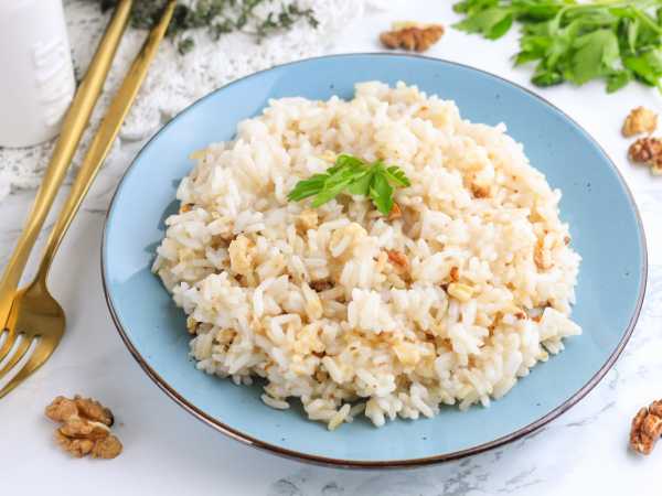 После закипания сделайте огонь минимальным и варите до готовности риса, примерно 20 минут. После отключения можете не открывать сотейник еще 5-10 минут, чтобы каша хорошо распарилась.