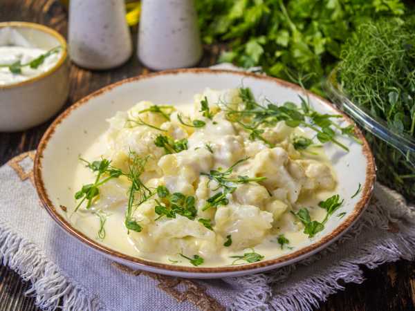 Это блюдо можно приготовить как из свежей, так и из замороженной цветной капусты. И в одном, и во втором случае капусту нужно будет немного отварить.
