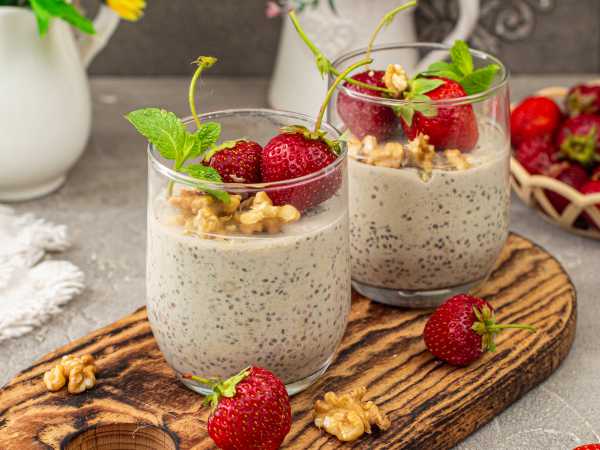 Постный чиа пудинг с фруктами готов. Подавайте его на вкусный, полезный завтрак или перекус.