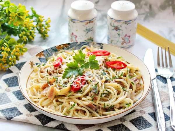 Бекон и сыр соленые, поэтому солить блюдо лучше в самом конце. Можно добавить по вкусу черного перца. Я добавила пару щепоток прованских трав.