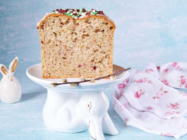 Посмотрите, какой разрез получился у куличей с апельсиновой начинкой. Крем хорошо держит форму и прекрасно дополняет мякиш кулича.