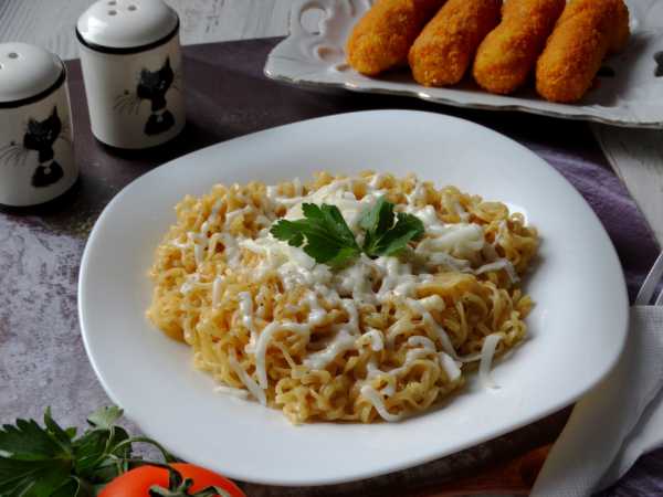После варки промыть холодной водой, откинуть на дуршлаг. Лапша, кстати, вкусная, но характерного какого-то кукурузного вкуса я не почувствовала.