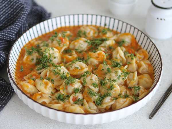 Чтобы приготовить пельмени с зеленью, сначала надо замесить тесто.