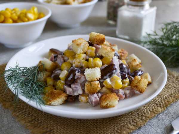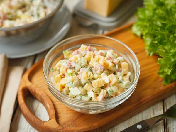 Всё, салат «Городской» готов, его можно подавать сразу, он не слоеный, поэтому пропитки не требует.