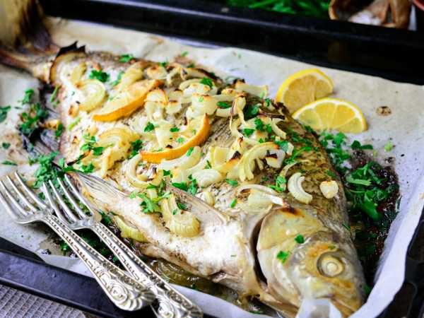 Отправьте всё в разогретую духовку. Запекайте рыбу под соусом «Тартар» в духовке примерно 15-20 минут при температуре 190-200°С.