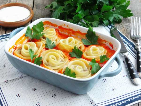 Влейте сметанный соус. Соуса должно быть достаточно, почти вровень с пельменями. Количество соуса будет зависеть от диаметра вашей формы. Если случится так, что соус "доходит" пельменям лишь до середины, долейте воды. Накройте форму фольгой, отправьте ленивые пельмени в сметанном соусе в духовку, разогретую до 180 градусов, минут на 40-45.