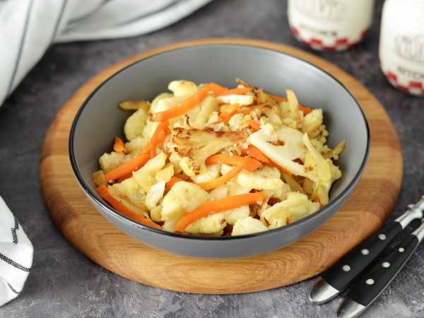 Соберём ингредиенты для приготовления цветной капусты с сухарями на сковороде.