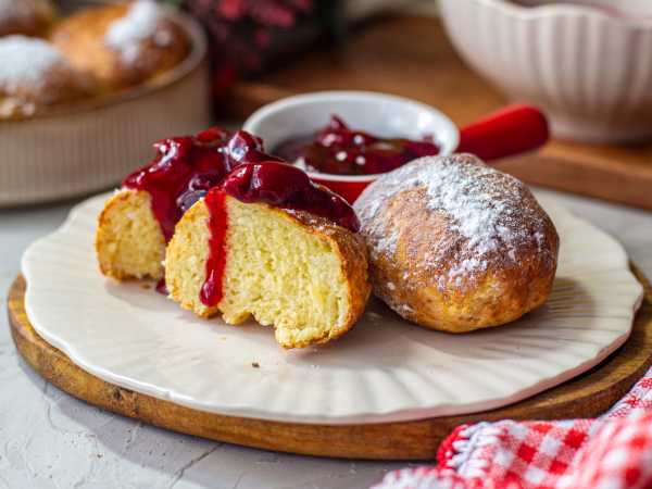 Затем аккуратно лопаткой пройдитесь по краю форму и аккуратно достаньте королевскую ватрушку из аэрогриля. Переложите ее на блюдо и можете подавать.