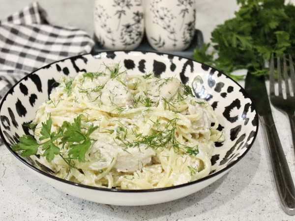 Жарьте филе до изменения цвета, 5-6 минут. После посолите, поперчите и приправьте сушеным базиликом. Налейте вино и готовьте курицу еще несколько минут, до выпаривания алкоголя.