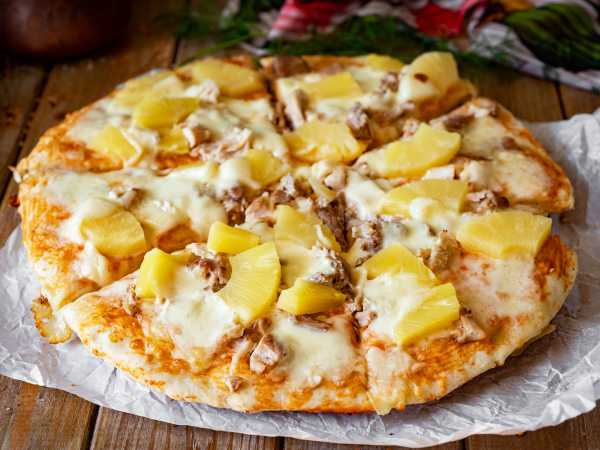 Спайси пицца готова! Как и любая другая, такая пицца хороша с пылу с жару! При подаче можно сбрызнуть дополнительно оливковым маслом, присыпать слегка сушеным орегано, украсить свежим базиликом. Можно также украсить пиццу маленькими остренькими перчинками по желанию.