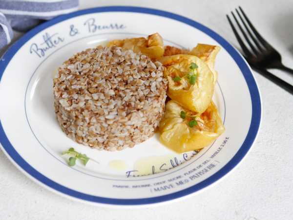 Гречневая каша на кокосовом молоке готова! Разложите ее по тарелкам и подавайте.