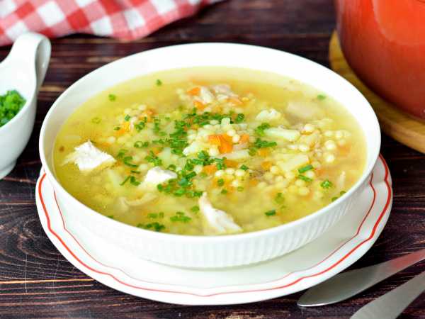 Ароматный, вкусный и полезный овощной суп с птитимом готов.