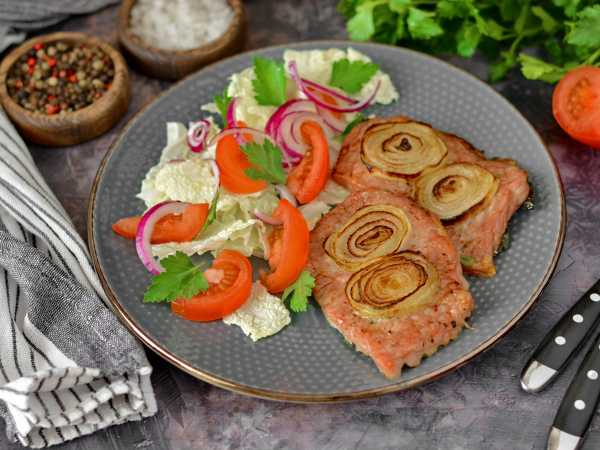 Сверху на овощи выложите обжаренных свиных рябчиков.