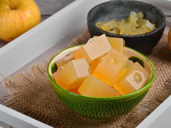 Готовое изделие нарежьте кубиками или полосками. По желанию слегка посыпьте крахмалом или кокосовой стружкой для предотвращения склеивания.