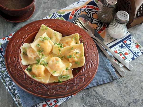 Варите равиоли с форелью в хорошем количестве воды до готовности теста, т.к. начинка уже готовая. Для тонкого теста может быть достаточно пары минут на слабом огне после закипания.