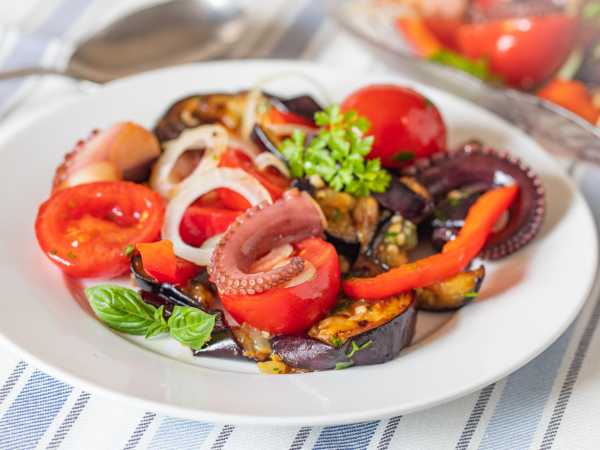 Ароматный, полезный и вкусный рататуй на сковороде готов.