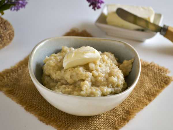 Разложите кашу по тарелкам, добавьте по вкусу сливочное масло и можно украсить ягодами или орехами.